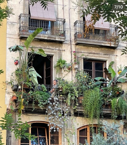 Certaines façades de Rio racontent aussi une autre histoire : celle de balcons où les plantes débordent, tombent, grimpent et transforment l’immeuble lui-même.
